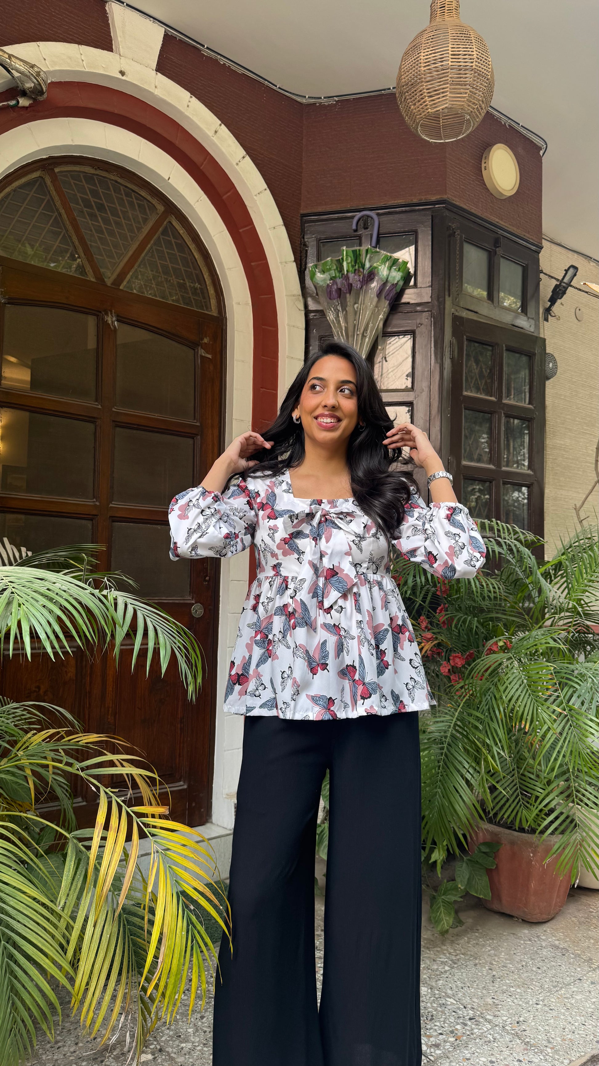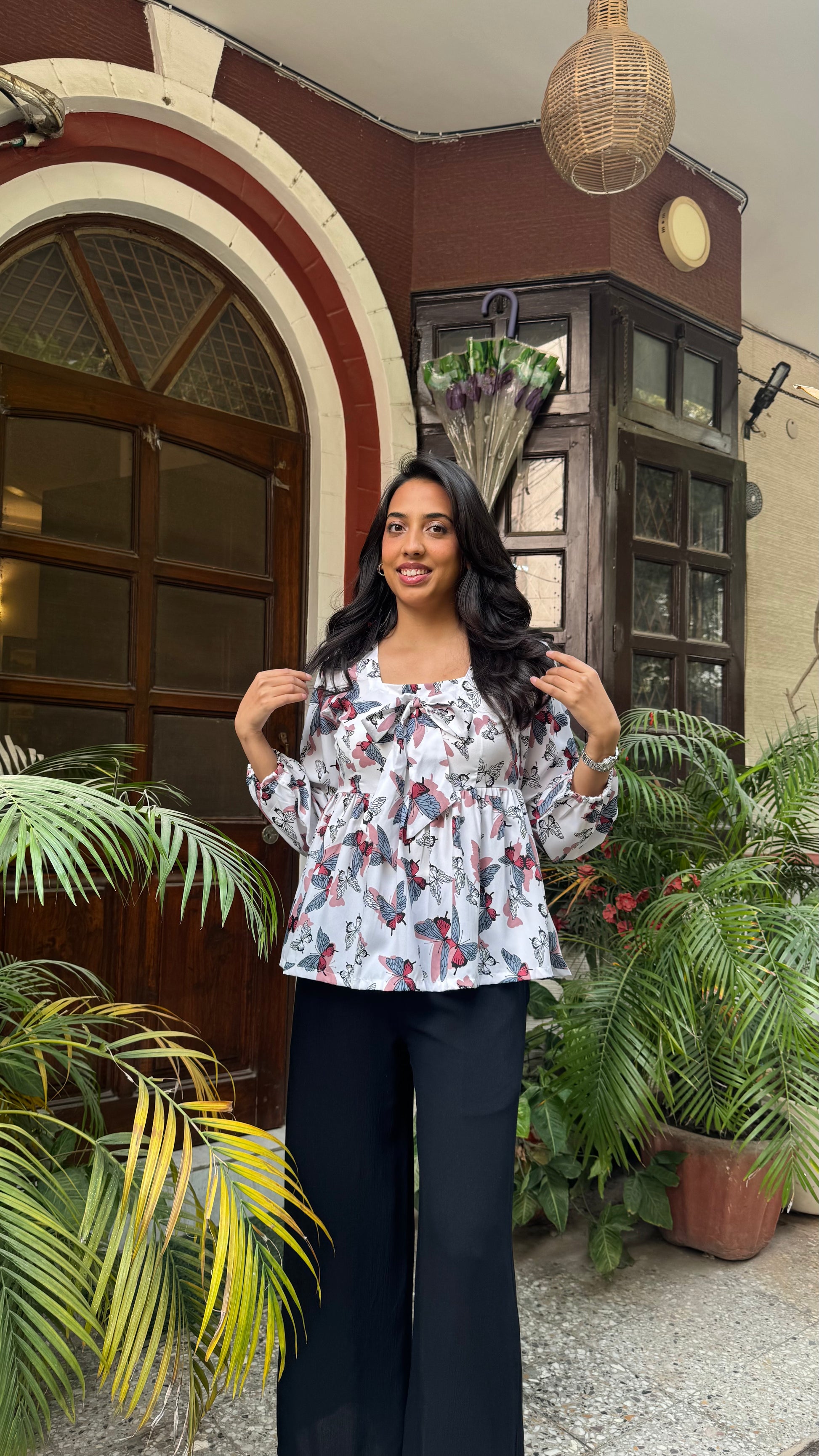Bow Blues Peplum top - White