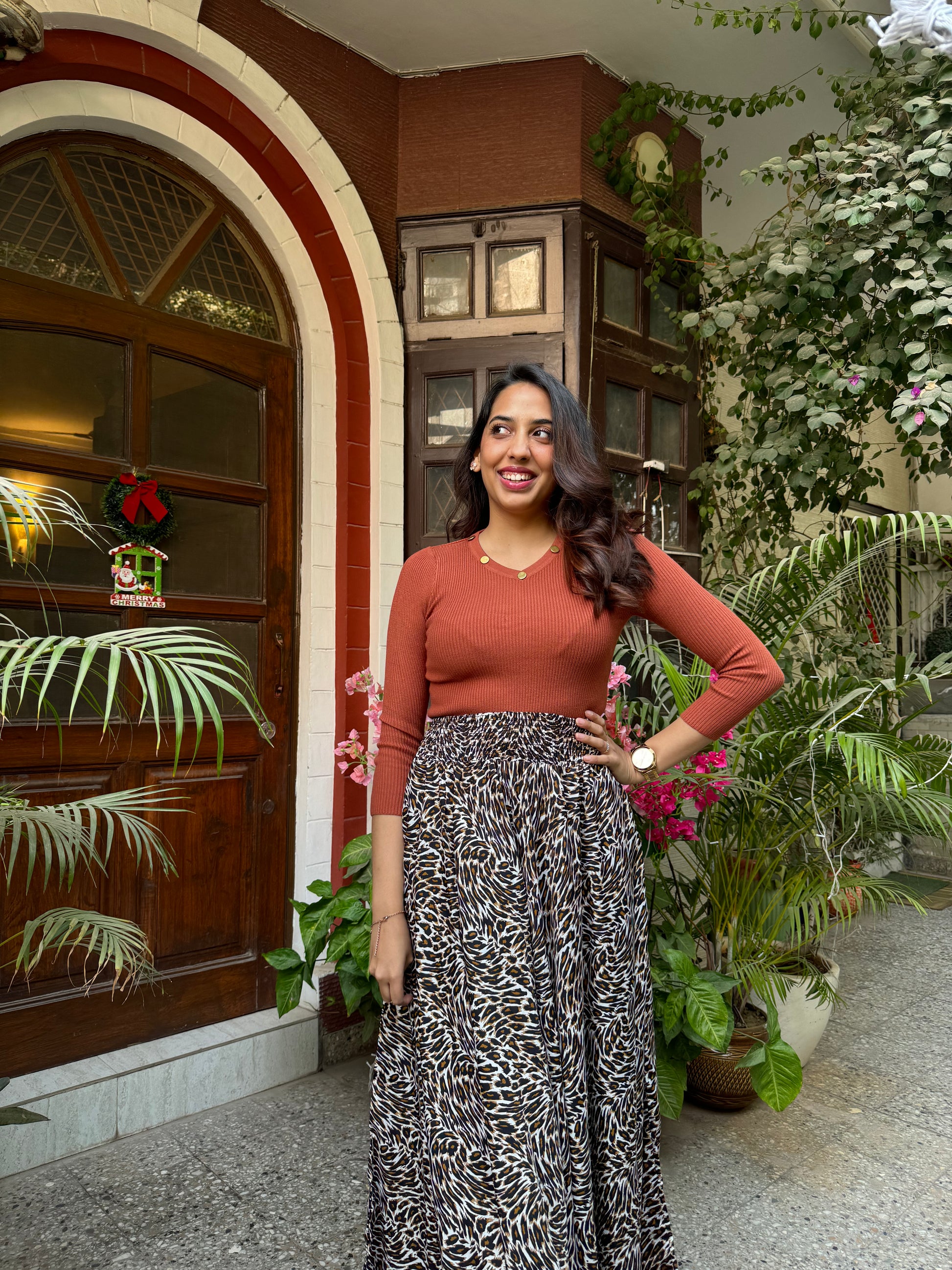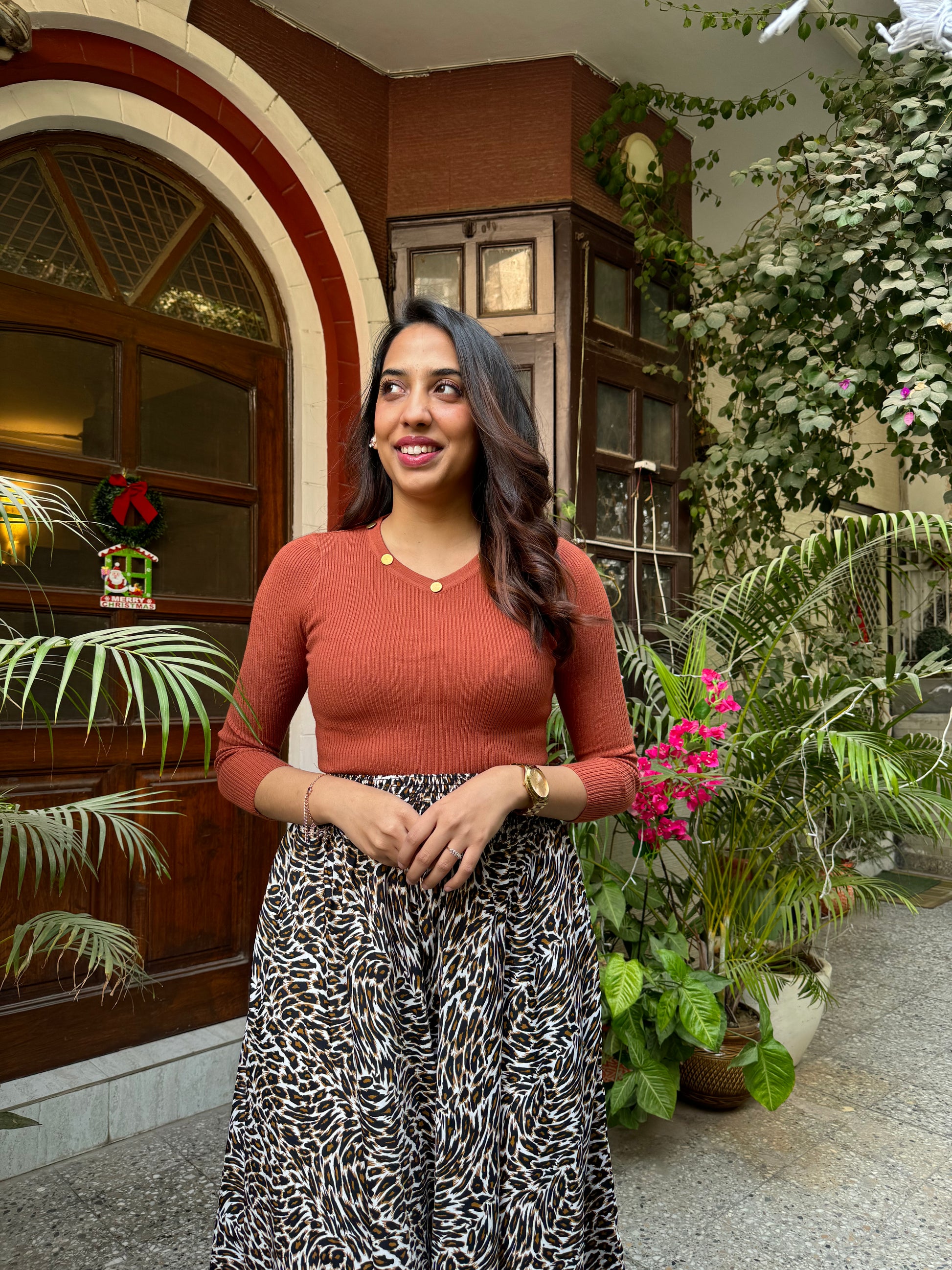 Brown Ribbed Sweater w/ Neck Detail (Free Size)