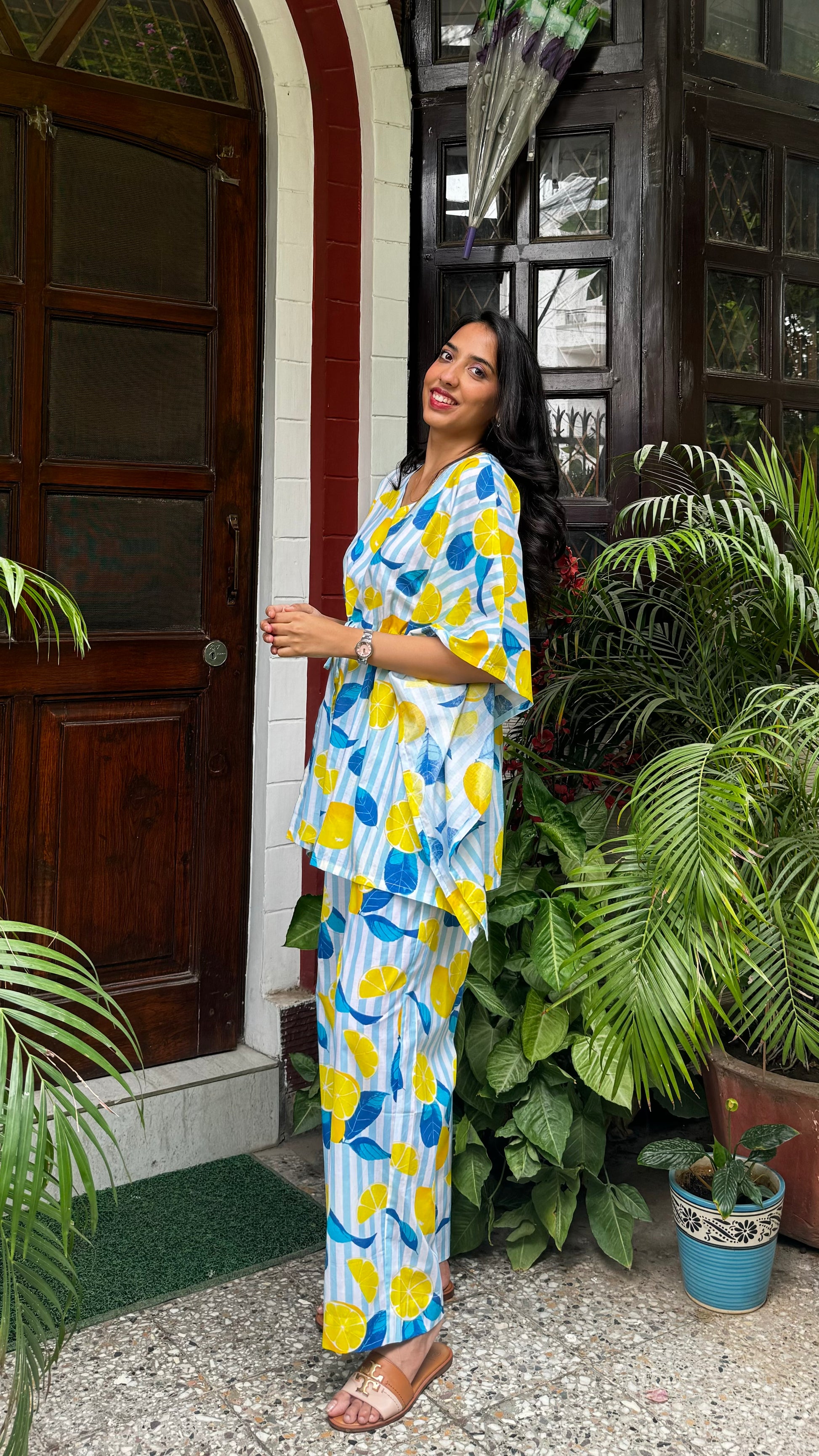 Butter Soft Cotton Kaftan Set (Premium Fabric) - Lemons