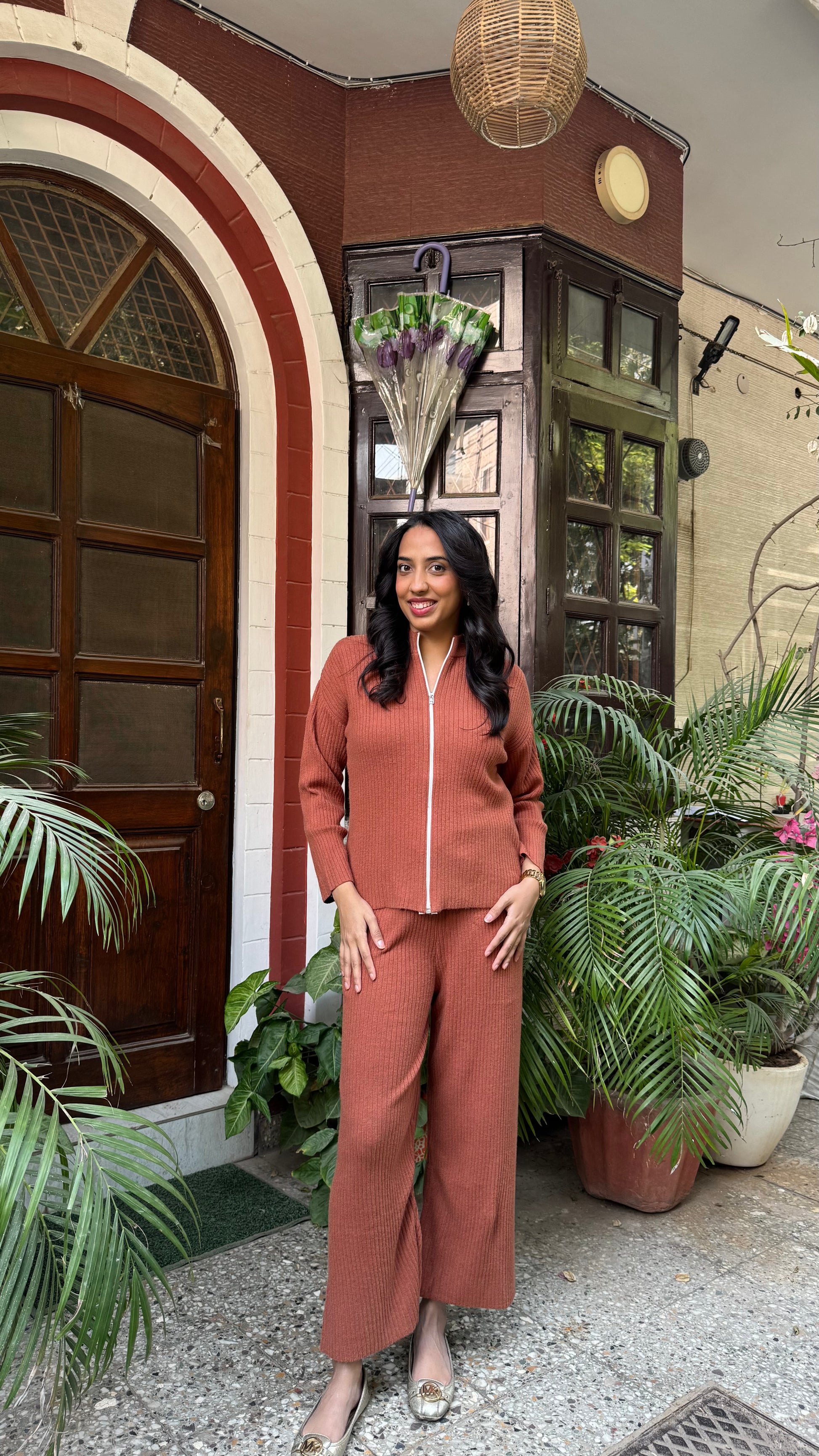 Lounge Ribbed Sweater Set - Brown (Free Size) - Premium Collection
