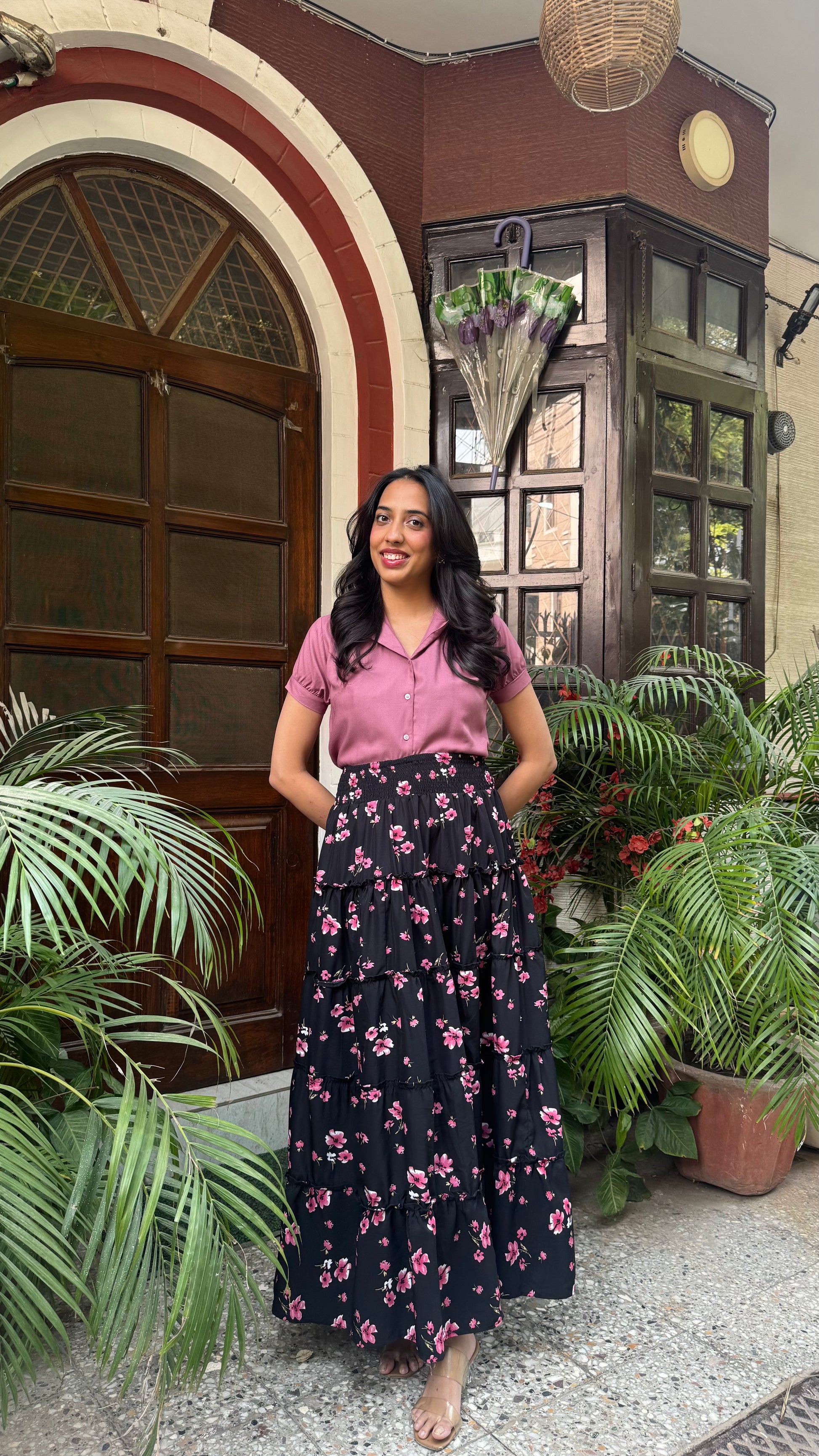 Señorita Tiered Maxi Skirt - Black Floral (Free Size)
