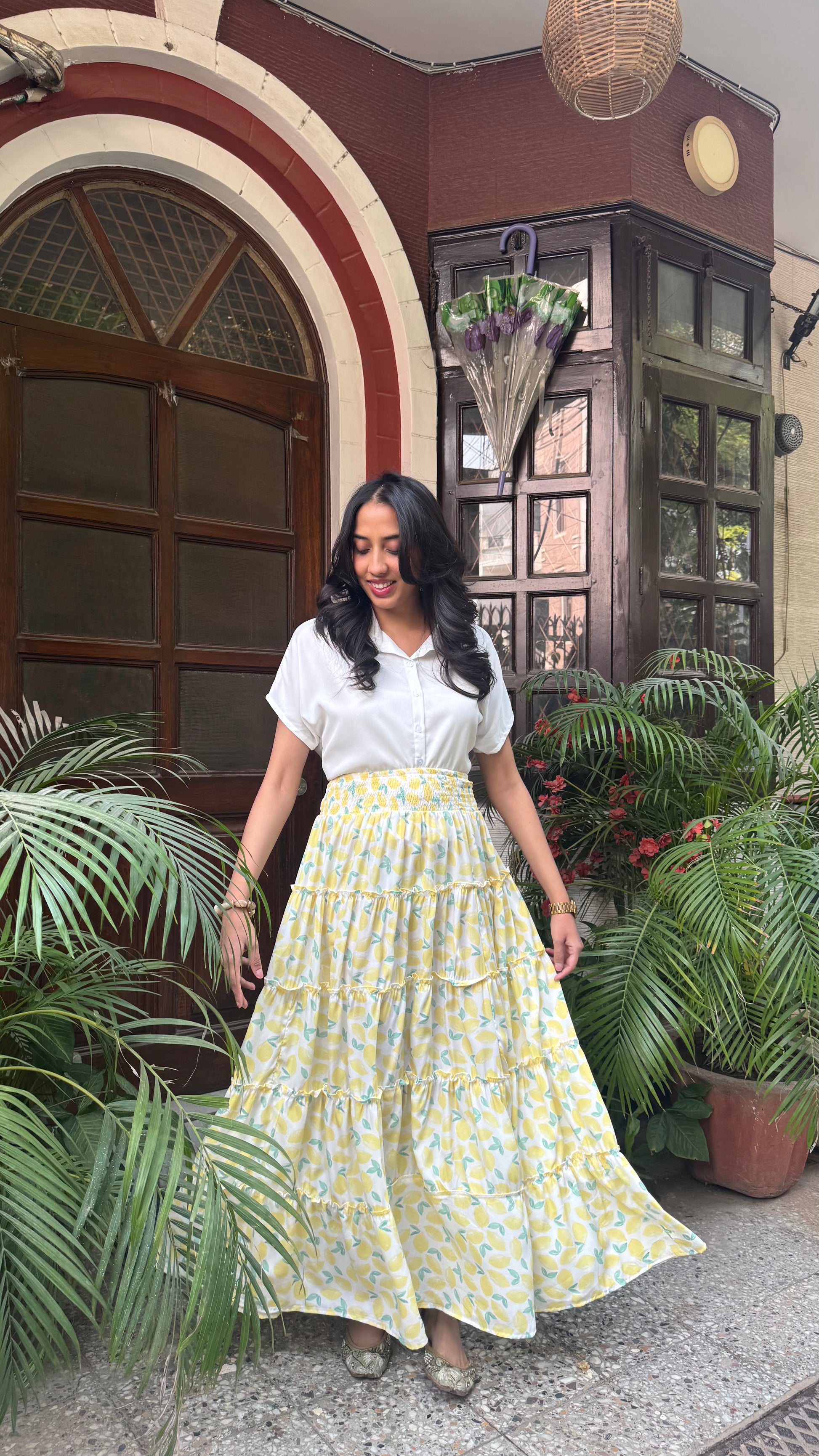 Señorita Tiered Maxi Skirt - Lemons (Free Size)