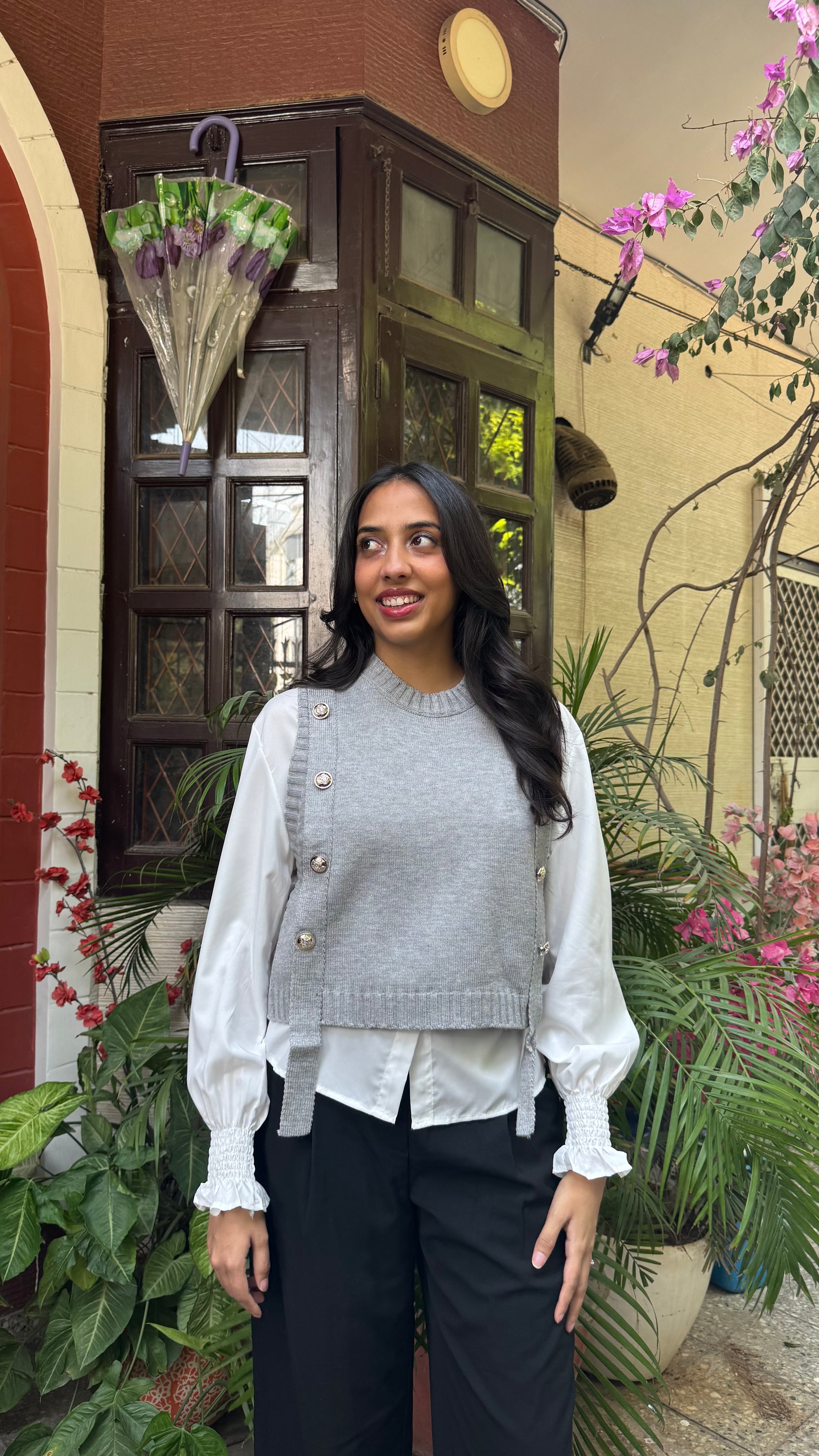 Material: Wool, Cotton & Acrylic Sweater with Crepe Shirt