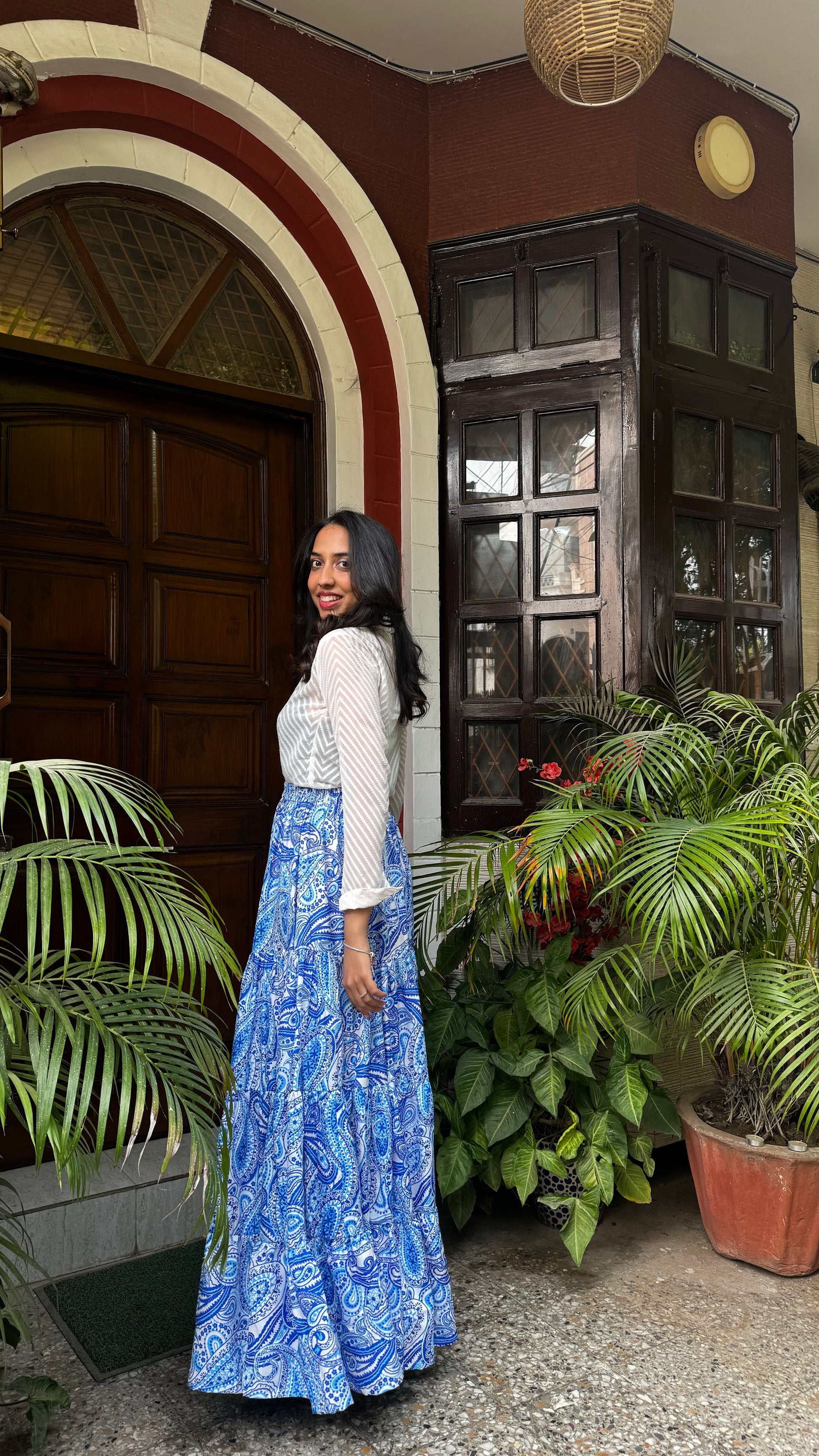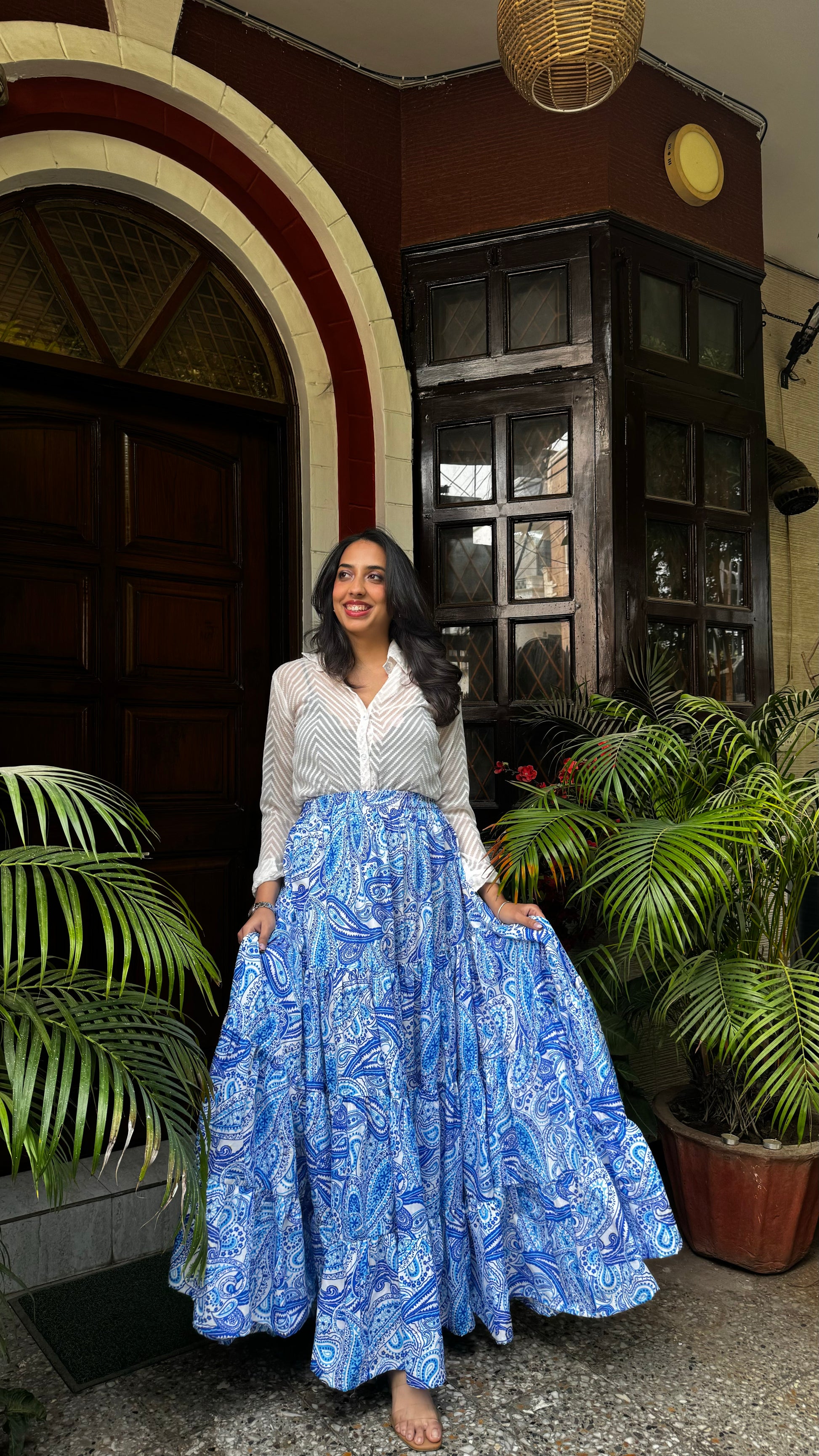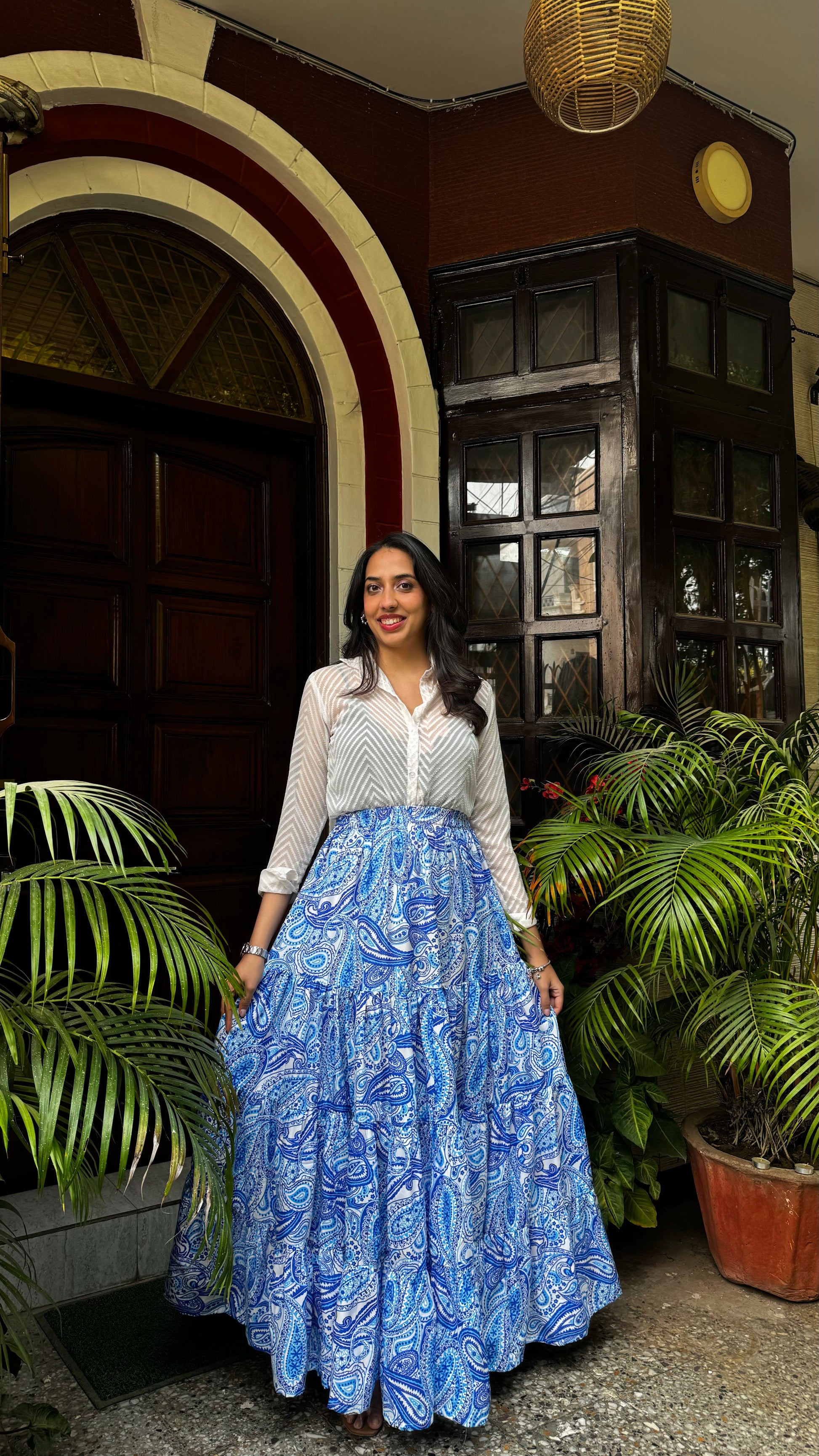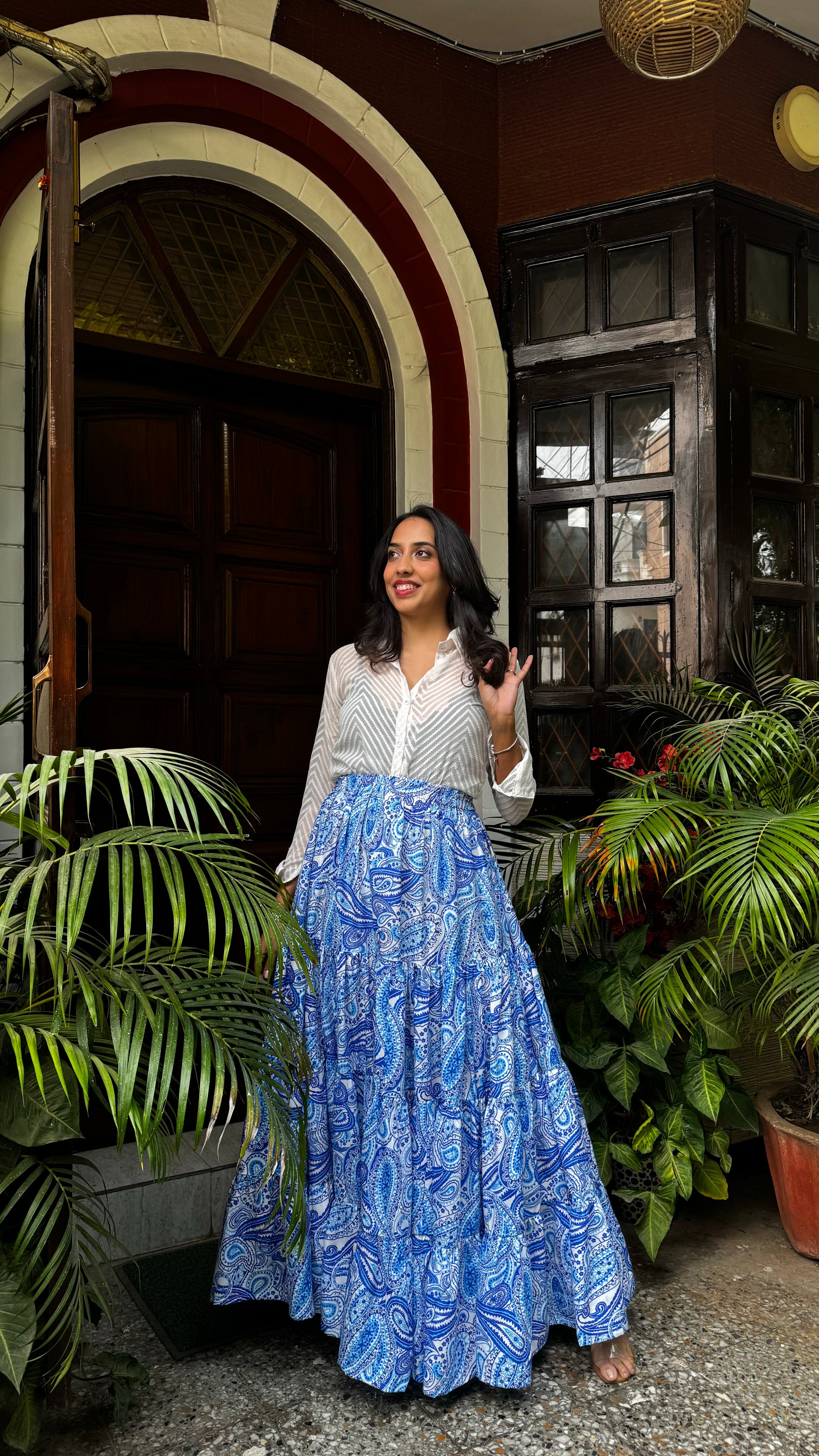 Paisley Heavy Tiered Skirt -Blue