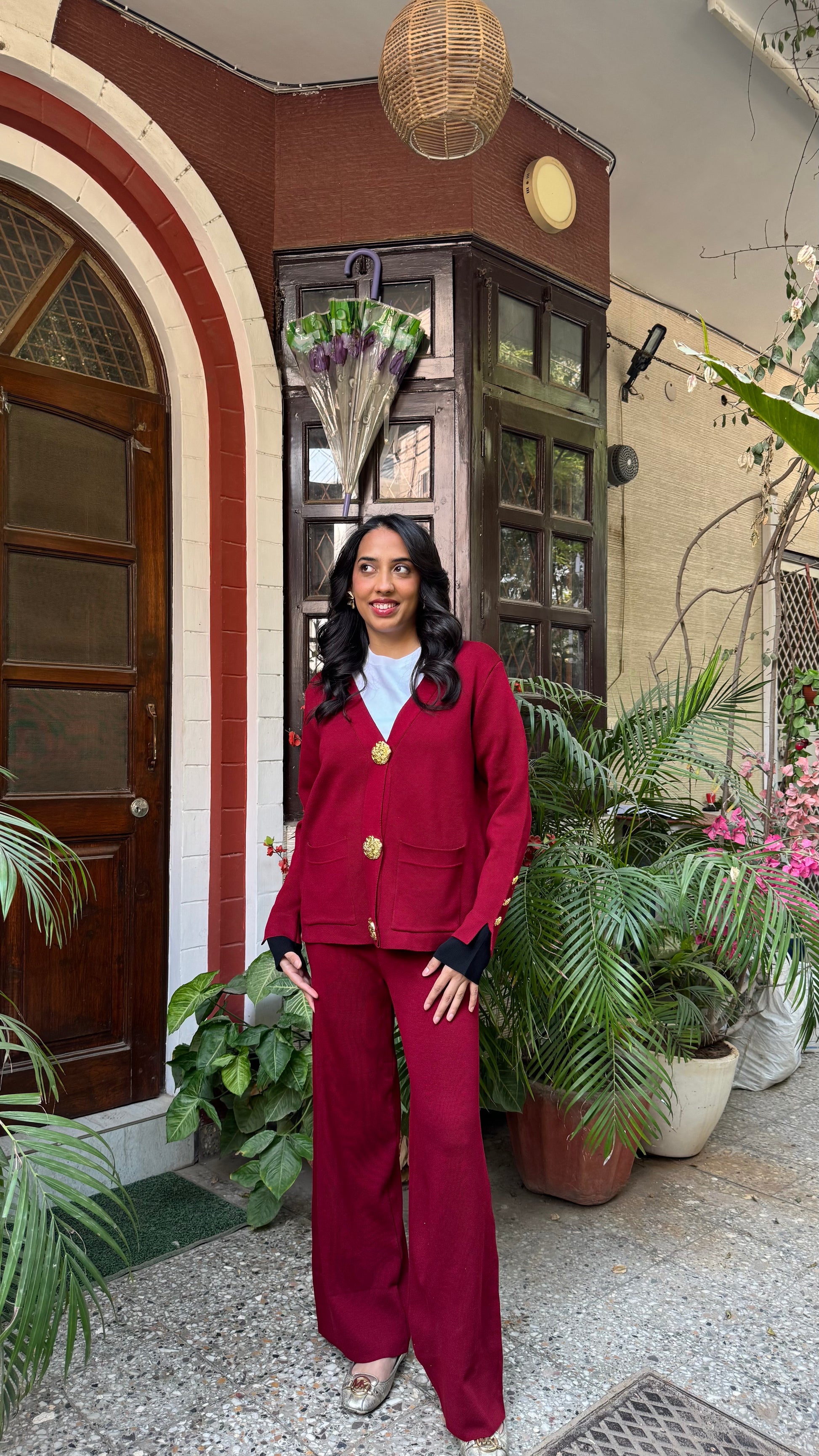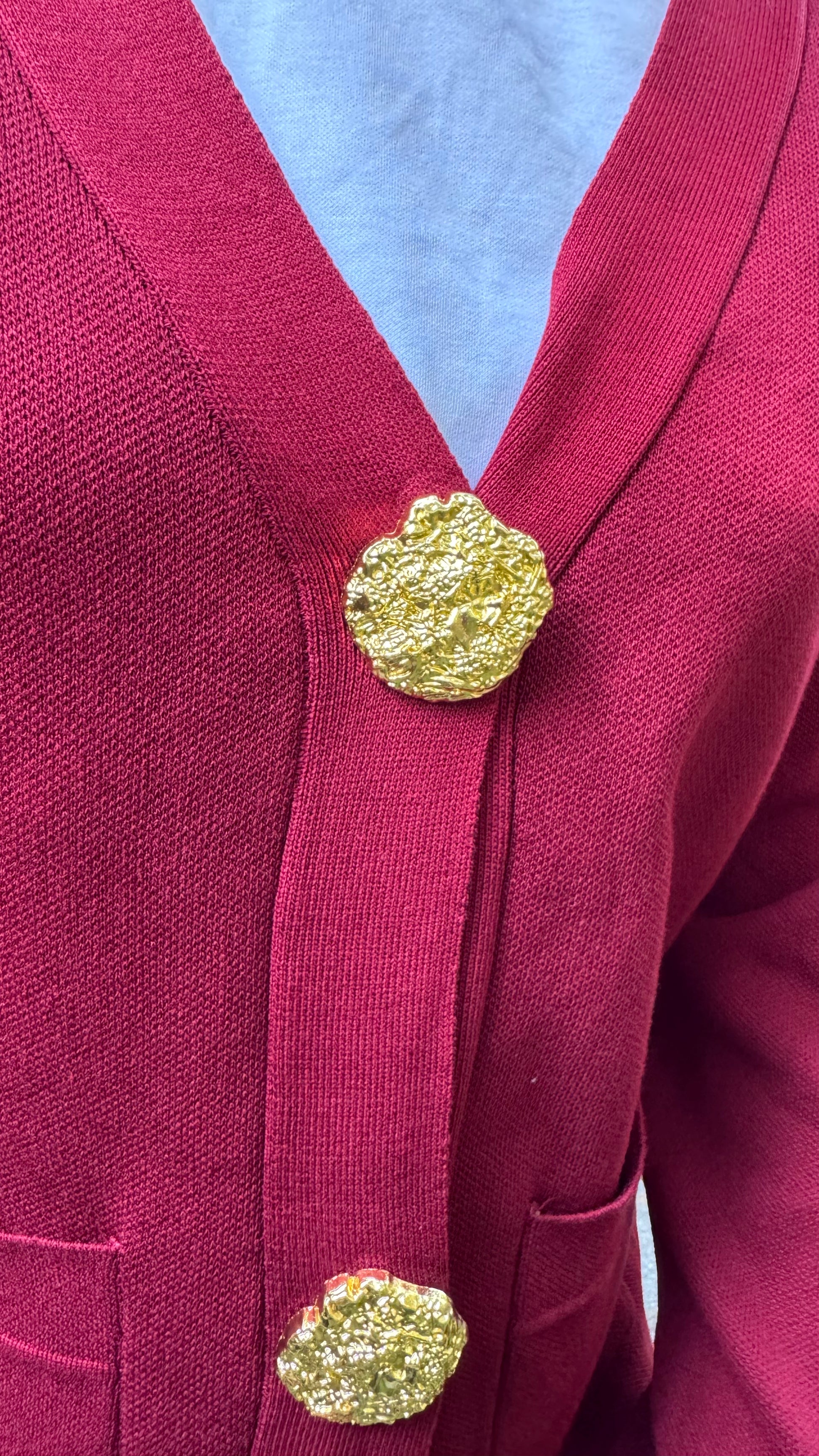 Timeless Golden Buttoned Sweater Set - Burgundy (Free Size) - Premium Collection