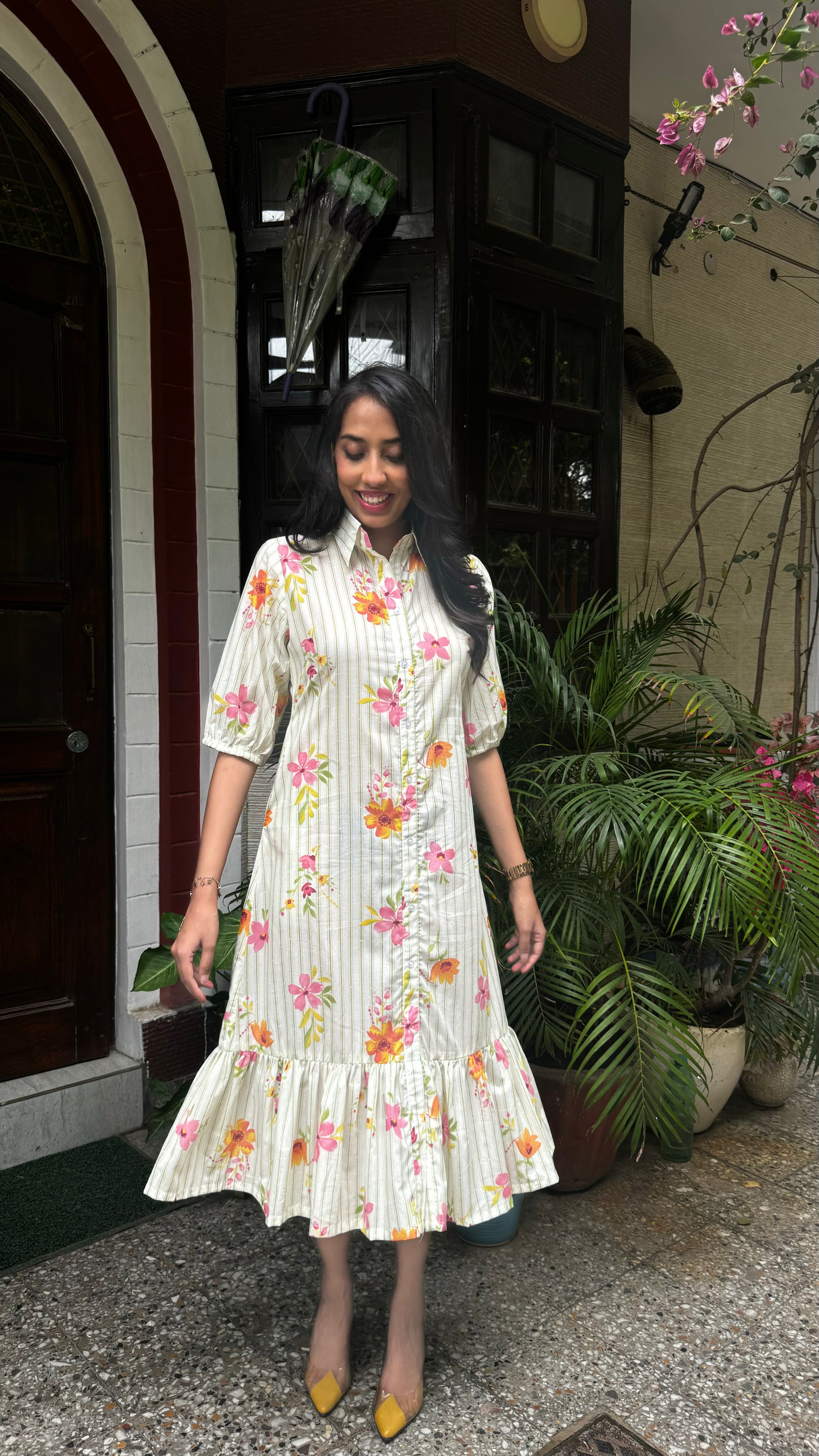Spring Collared Cotton Dress - Light Green (Premium Collection)