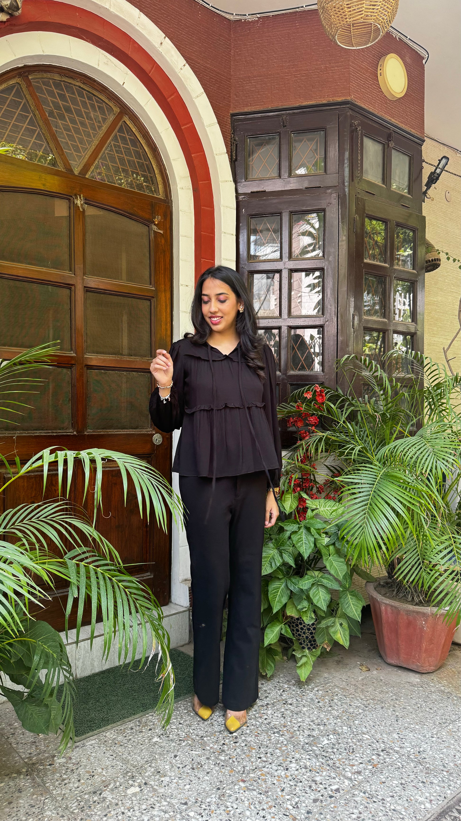 Tiers & Twirls Layered Top – Black (Premium Collection)